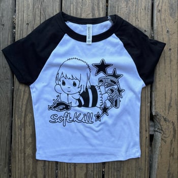 "All Day I Dream About SoftKill" Raglan Crop Top (White/Black)